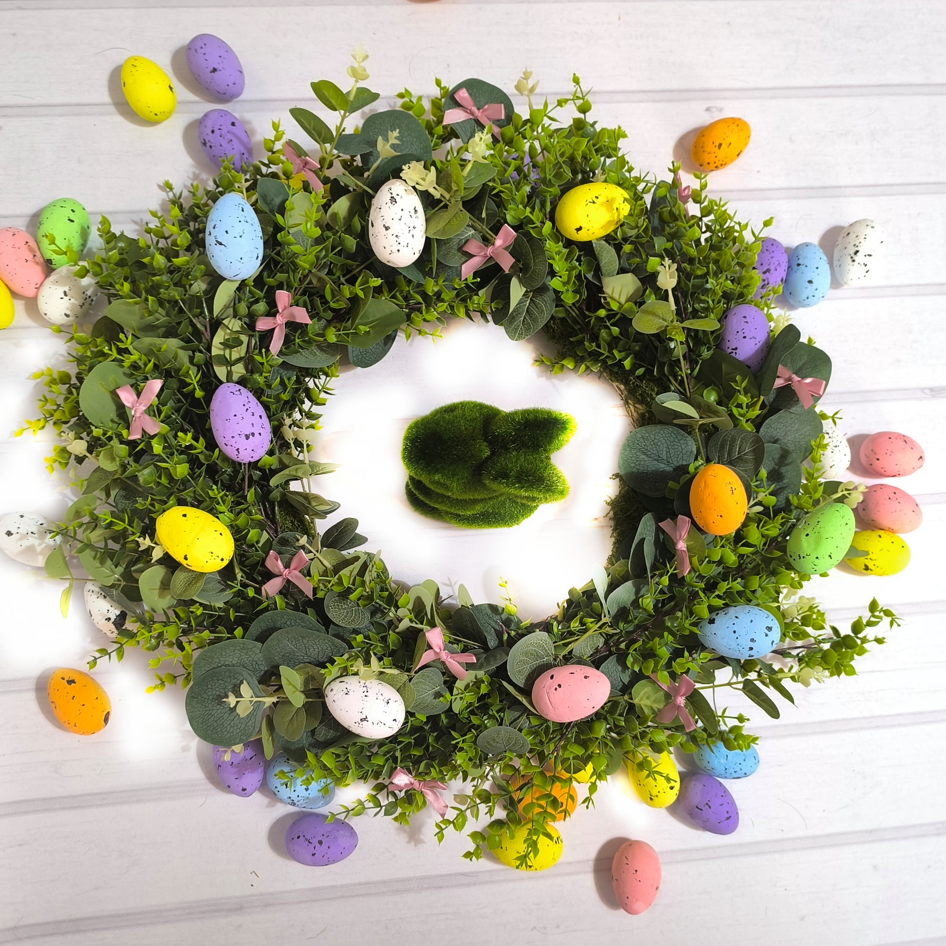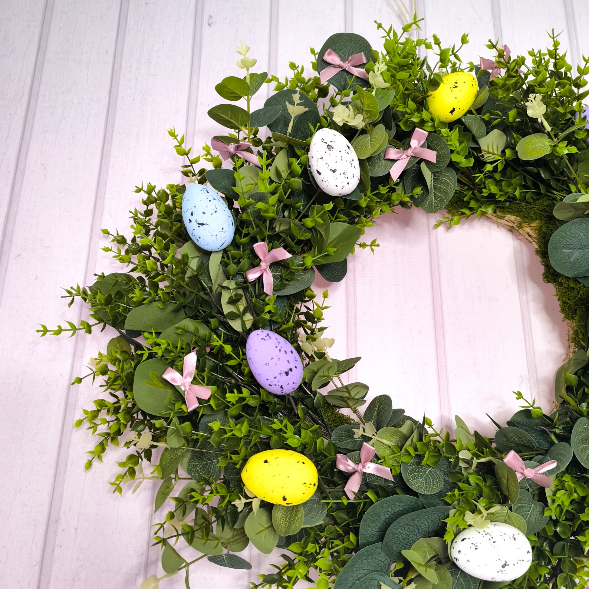 Wianek z kokardkami i pisankami 40 cm